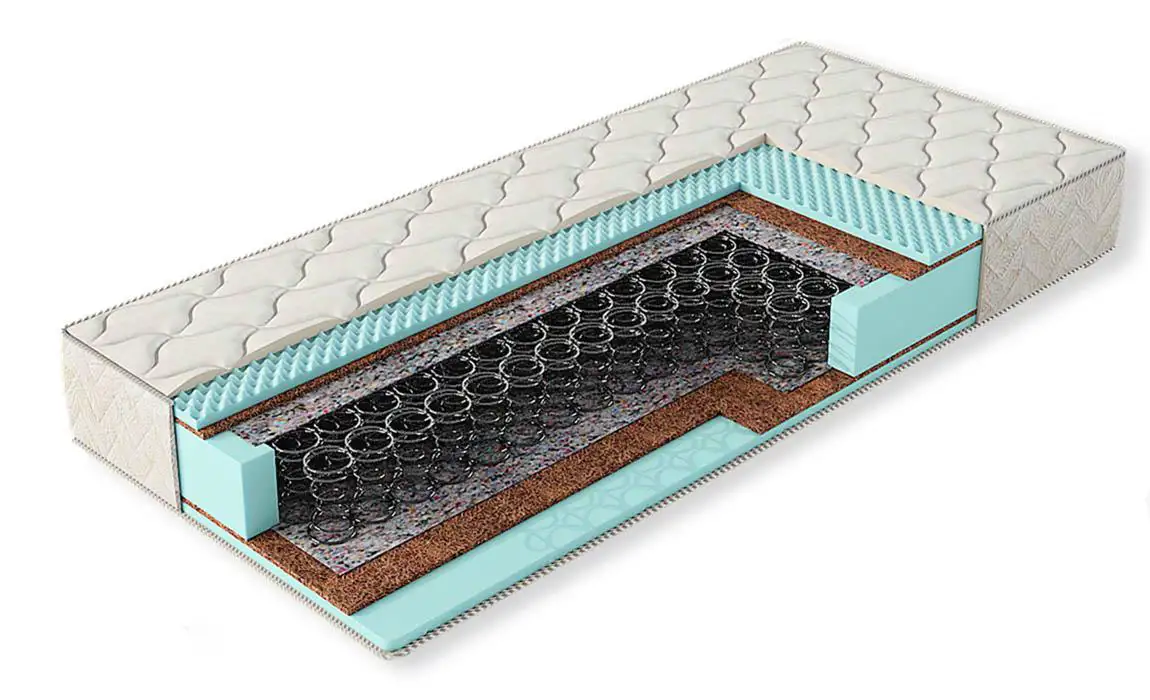 Пружинный матрас средней жесткости. Эта модель изготовлена на основе традиционного пружинного блока Bonnell. В качестве мягкого слоя применяется пена с массажным эффектом – пористый материал, характеризующийся мягкостью, гипоаллергенностью. Кокосовое волокно придает матрасу умеренную жесткость.
