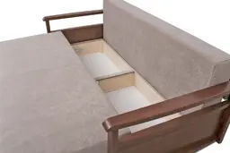 Вы можете выбрать любую ткань на сайте Союз-М. Диван имеет большое и ровное спальное место, полноценно заменит кровать, ведь матрас выполнен на блоке независимых пружин (ортопедический матрас). Вас несомненно порадует короб для белья занимающий всю площадь под диваном. Все деревянные декоративные элементы (подлокотники, задняя спинка, царга) из массива бука. Цвет бука можно выбрать. Диван легко трансформируется в кровать при помощи механизма "еврокнижка". Дополнительно установлен "тик так" благодаря которому выдвижная чаcть будет "выпрыгивать" не касаясь напольного покрытия. Спальное место в неразложенном виде 80*200 см; в разложенном 160*200.