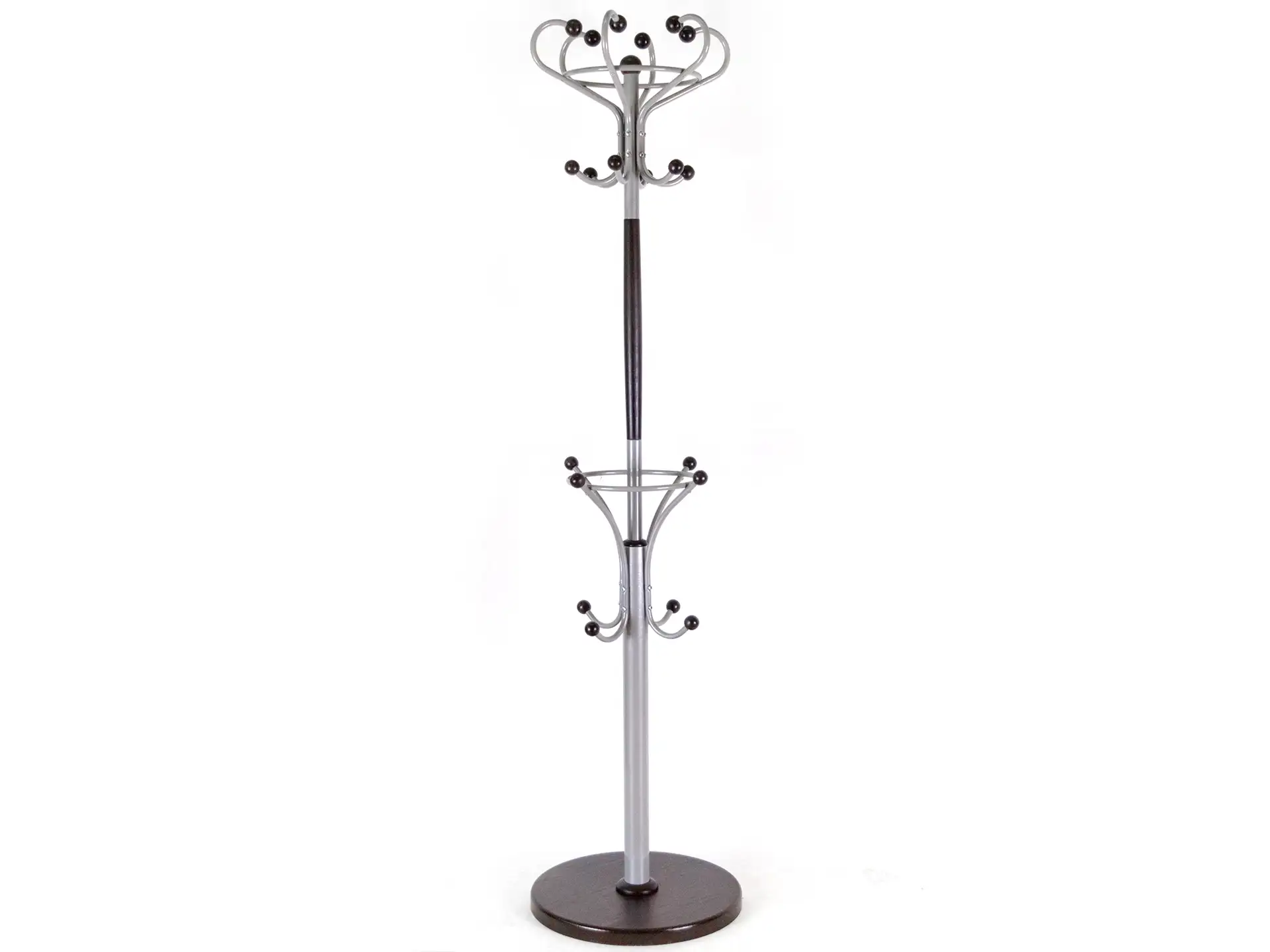Массивная устойчивая вешалка для верхней одежды в кабинет, приемную, офис, кафе 6 крючков для одежды, 6 крючков для головных уборов, 8 крючков для сумок, удобное кольцо для размещения зонтов, удобное кольцо сверху для того, чтобы вешать одежду на вешалках-плечиках Очень массивное основание, низ вешалки из толстой трубы, очень устойчивая конструкция, износостойкий лак на шариках Крючки сделаны из стальной трубки, выдерживают значительные перегрузки, декоративные элементы из натурального бука Компактная упаковка, легко транспортировать и собирать ___ Вешалка напольная - незаменимый предмет для хранения верхней одежды и носимых вещей в коридор, прихожую. Будет хорошей альтернативой вешалке настенной. Отлично подойдет и для дома и как офисная. Крючки можно использовать и для плечиков, и для одежды, и для размещения органайзера. Отличный комплект в прихожую, в гардероб, в гардеробную комнату, в баню, в ванную, на балкон - вешалка напольная, настенное зеркало и банкетка в одном стиле. Вешалка стойка напольная для хранения вещей может быть как деревянная, так и металлическая. МАТЕРИАЛЫ: стальн.труба, массив дерева, полимер. покрытие, ЛМДФ УПАКОВКА: 76х45х10 см., 1 место ВЕС: 6 кг. Цвет: венге