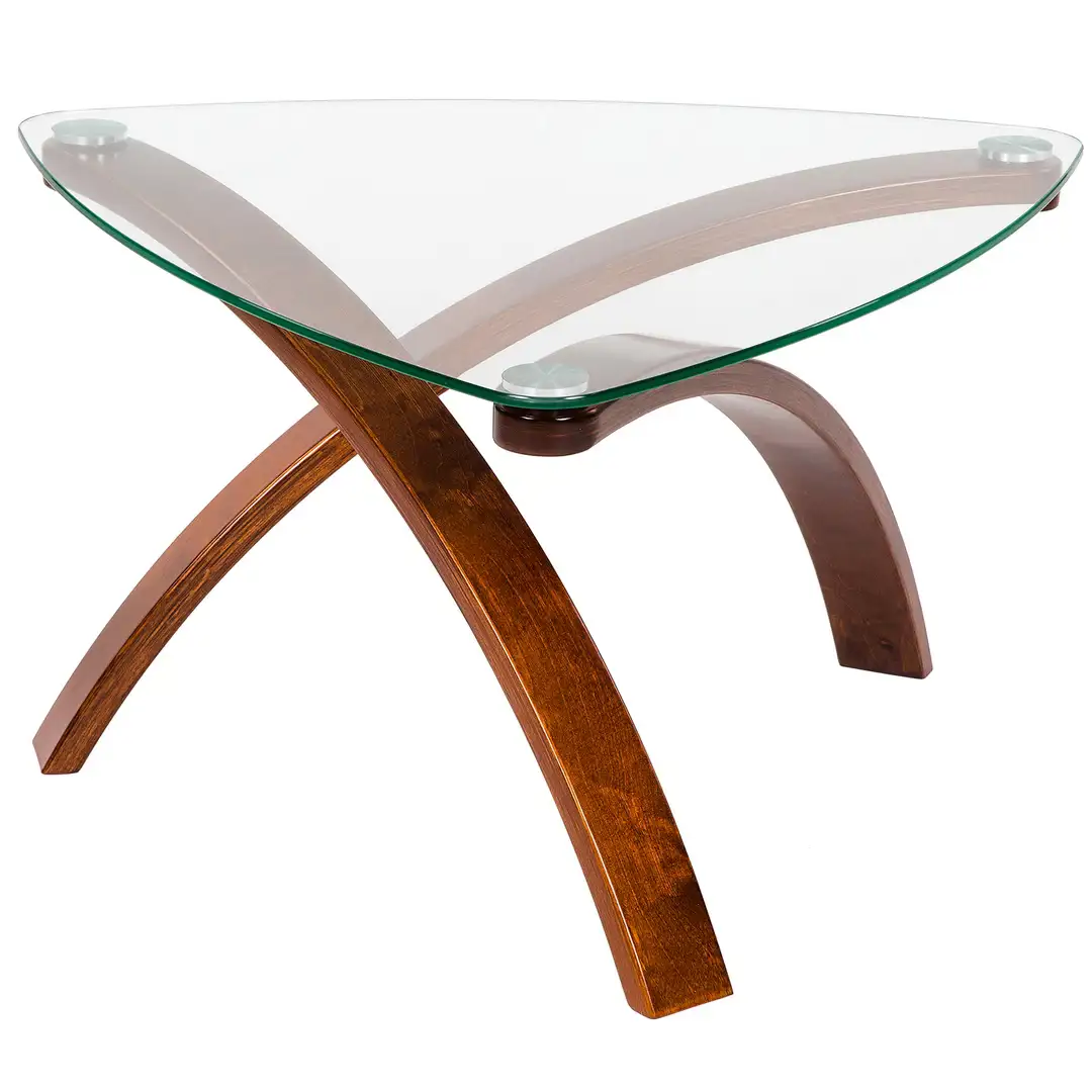 Журнальный стол «Гурон 3» - лаконичность и элегантность. Этот столик - результат размышлений дизайнера о полете. Он настолько легко смотрится в интерьере, что практически не отнимает пространства. За счет стилизованных под перья опор из гнутого дерева и оригинального крепления ножек к поверхности стола, создается ощущение нереальности. Необычная для столов форма столешницы только подчеркивает индивидуальность. Такой столик всегда будет создавать в вашей обстановке точку притяжения взгляда. Ваши гости оценят ваш вкус и смелость, если вы используете его дома. Этот столик хорошо подходит и для оформления общественных мест, зон отдыха, гостиниц. Несмотря на кажущуюся хрупкость, этот столик очень практичный, тем более имея в виду простоту ухода.___ Журнальный столик с деревянной столешницей - не только украшение интерьера, но и весьма полезная в повседневной жизни вещь. Имея в своей обстановке журнальный столик, вы сможете хранить на нем тысячу ненужных вещей, сможете его быстро сервировать для нежданных гостей, редко, но сможете использовать его как стол письменный, кухонный, сервировочный, кофейный, или как туалетный столик. Стол журнальный - универсальная вещь. При выборе обратите внимание не только на габаритные размеры, но особенно на высоту. Если он будет стоять около дивана, то это особенно важно. Некрасиво, когда поверхность журнального стола выше сиденья, но и слишком низкие журнальные столики не всегда удобны - придется нагибаться. Сделайте свой выбор, а мы позаботимся о том, чтобы покупка стала для вас приятной. МАТЕРИАЛЫ: стекло закаленное, гнутоклееный шпон. УПАКОВКА: 85x93х13,5 см, 1 место ВЕС: 21,9 кг Цвет: Береза Белая, Вишня, Венге структура, Шимо, Орех, Бежевый, Черный, Белый