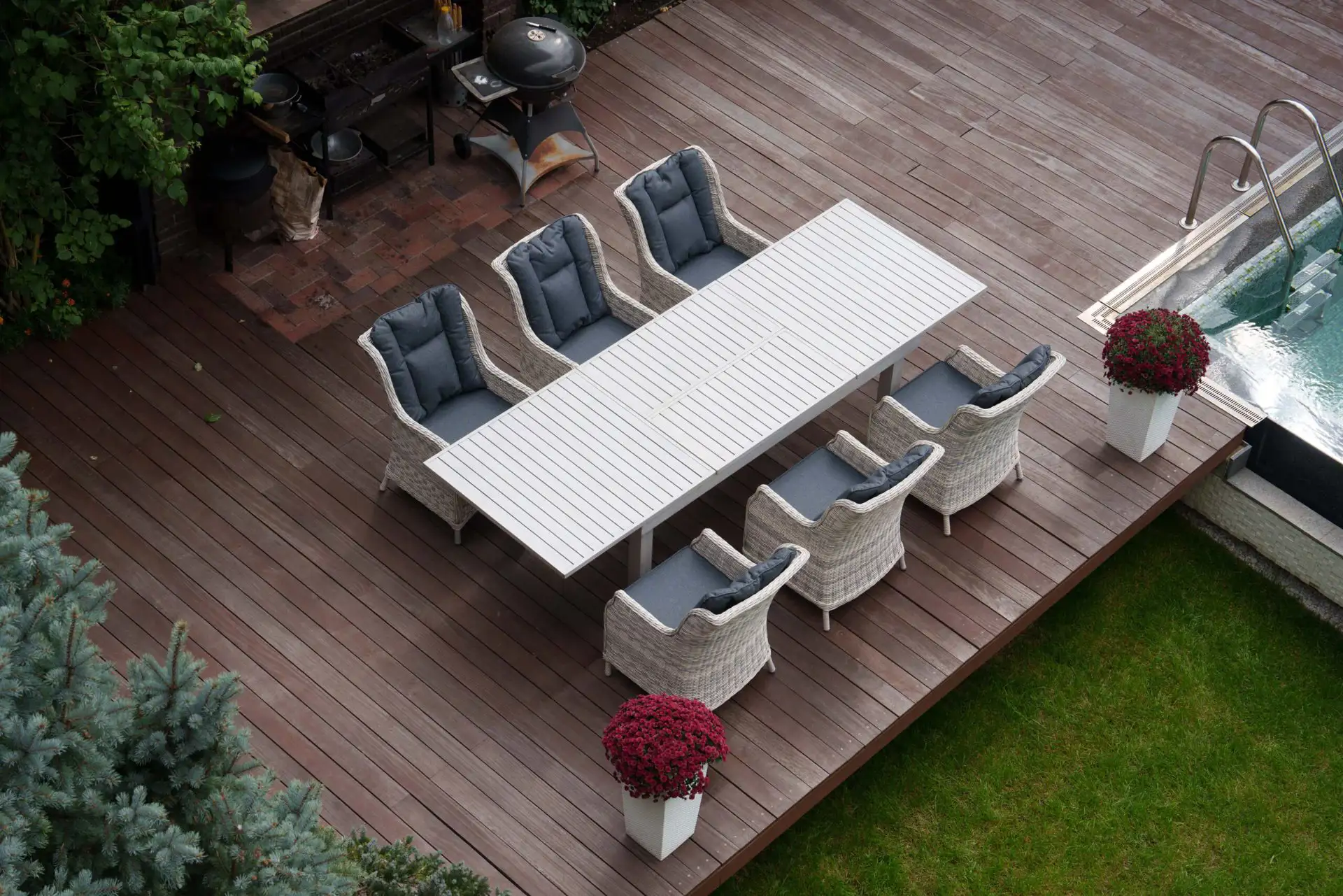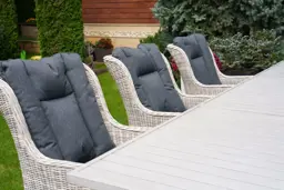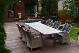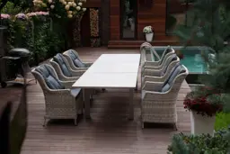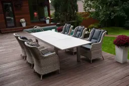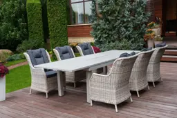 | Комплектация | обеденный стол - 1шт, кресло с подлокотниками и подушками - 6 шт |